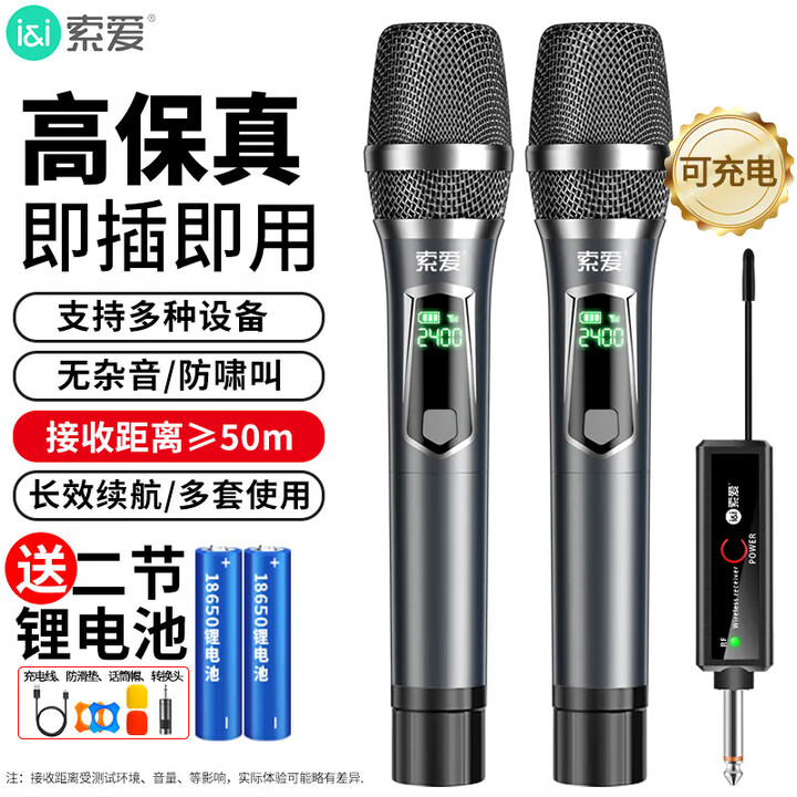索爱(soaiy)充电无线麦克风家庭KTV唱歌舞台主持演讲K歌会议音箱音响功放万能一拖二话筒